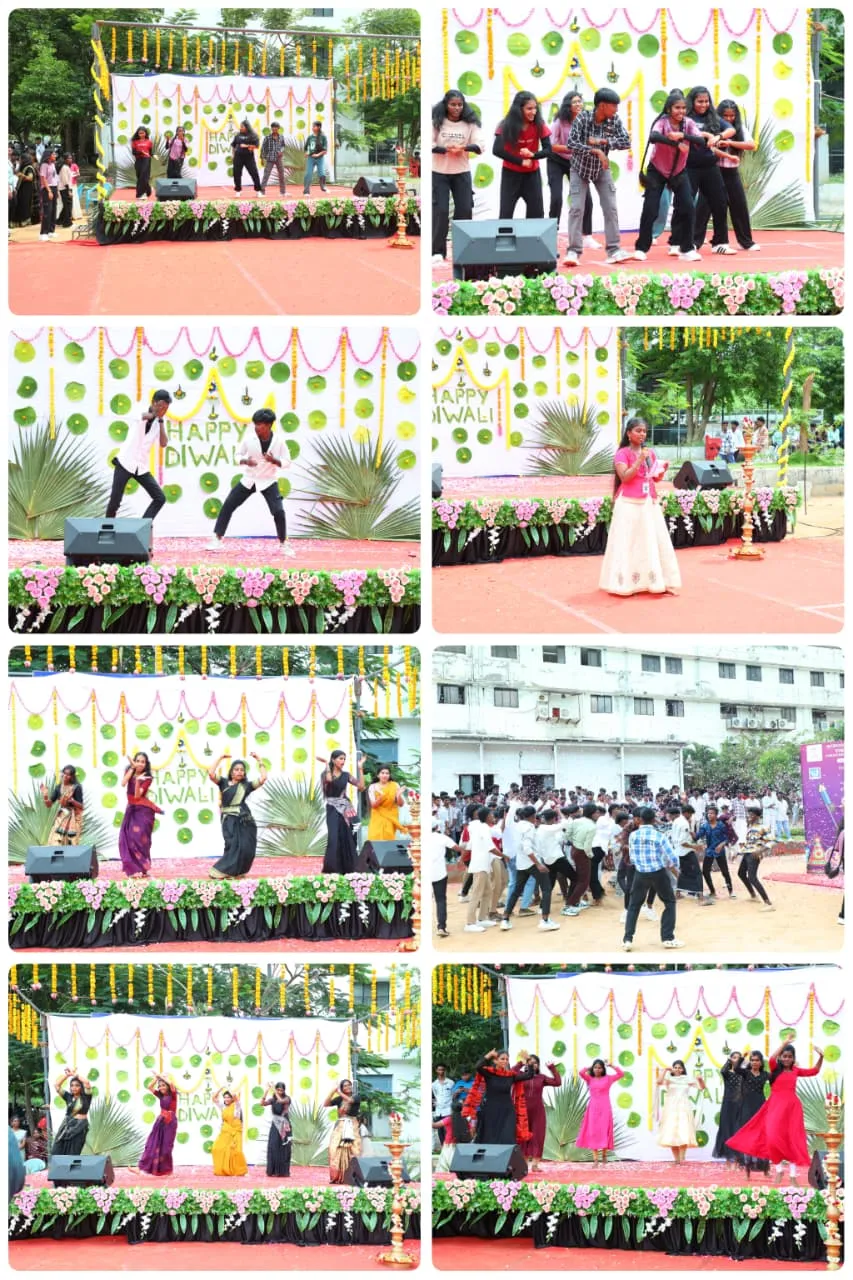 School of Allied Health Sciences, VMRF (DU),Salem. The Fine Arts Club, Student Council, EVS Club, and Bhumi Club of the School of Allied Health Sciences, VMRF(DU), Salem, organized a vibrant Diwali Celebration on the college campus. The programme commenced with the traditional lighting of lamps and the firing of eco-friendly crackers, setting a joyful and environmentally responsible tone for the celebration. Prof. Dr. B. Sendilkumar, Director, SAHS, VMRF(DU), emphasized the importance of celebrating Diwali in an eco-friendly and sustainable manner. A highlight of the event was a thematic drama (Therukoothu) performed by SAHS students on the history and significance of Diwali celebrations. Followed by this various cultural events were performed by students. As part of the celebration, a Diwali Stall was organized to exhibit the entrepreneurial spirit of the students. The stall featured a wide range of homemade food products, fun games,fancy items and handcrafted gift items. The Director inaugurated the stall, and both faculty and students visited enthusiastically. The profits from the stall were donated to the Nattamangalam Children’s Orphanage. The event concluded with a special pooja and the distribution of sweets to all faculty members and students.